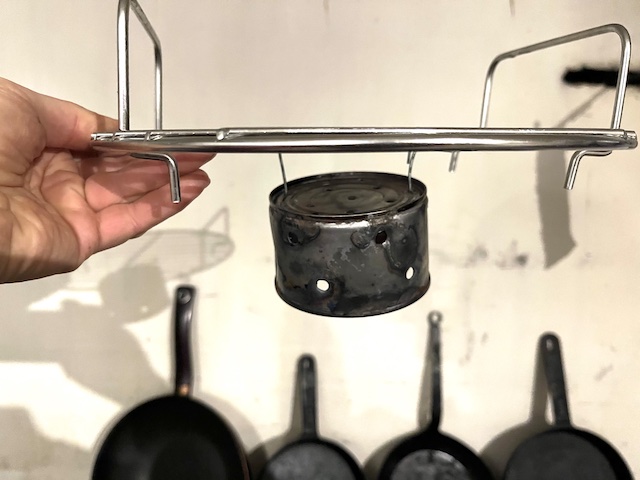Kokoontaittuva hiiligrilli on ollut vakiovarusteeni reissuissa ja olen käyttänyt sitä ahkerasti, mutta joskus sitä vaan haluaa makkaransa nopeasti ja helposti ja etenkin metsäpalovaroituksen aikaan metsässä grillaaminen on hyvin hyvin epäilyttävää toimintaa. Kokeilin kerran nälissäni grillata makkaraa Trangian päälle asetetulla kertakäyttögrillin ritilällä folion päällä, mutta lämpö tuli liian pistemäisesti yhdestä kohtaa ja lisäksi makkaraan tuli jostain outo maku. Totesin idean tuomituksi, kunnes törmäsin netissä Trangiaan suunniteltuun, grillauksen mahdollistavaan kaupalliseen tuotteeseen joka koostui grilliritilästä ja sen alla roikkuvasta metallilieriöstä, jonka tarkoituksena oli jakaa liekistä tuleva kuumuus laajemmalle alueelle sekä suojata kaasupoltinta tippuvalta rasvalta ja muulta töhkältä. Pihinä ja kierrätysintoisena askartelijana olin varma, että tämä on toteutettavissa ihan omin kätösin, vaikka en metallin työstöä hallitsekaan. Eräkamppeet jos jotkin houkuttelevat tee-se-itse-henkilöitä keulimaan netissä aikaansaannoksillaan, joten Trangian grilliosan tuunausohjeita löytyi useita. Ja eikun kokeilemaan!