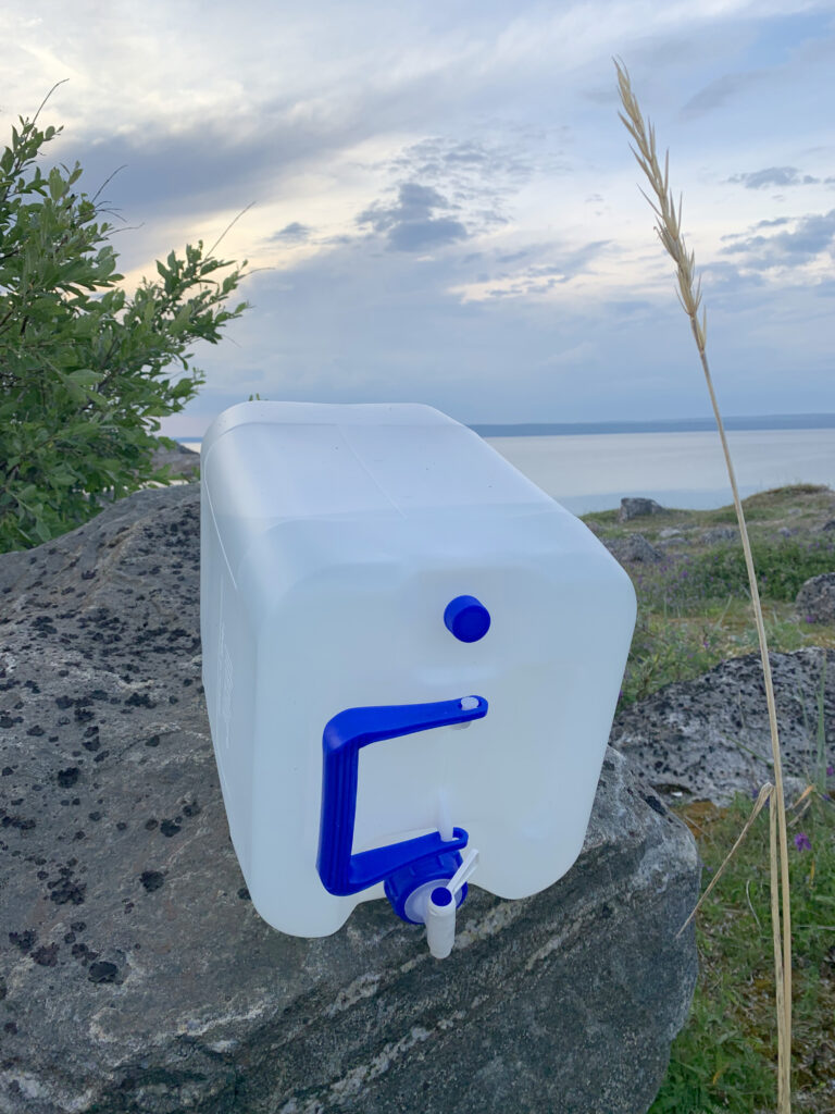 Ostin juomavettä varten Biltemasta uuden kääntöhanallisen kanisterin, mutta se tiputteli vettä hanan saumoista. Tonkka meni kertaalleen vaihtoon, mutta siinä oli sama vika, joten Biltema sai pitää tonkkansa. Löysäsin kukkaronnyörit ja hommasin laadukkaamman pänikän, jossa kaikki mahdolliset vuotavat asiat olivat samalla sivulla, joten kuljetus sujuu ilman huolta läikkymisestä. Tässä päälärissä hana on oikeasti käännettävä sivuun että siitä tulee vettä, toisin kuin ensimmäisessä, jossa riitti kevyt nosto. Uusi tonkka on toiminut mainiosti ja on muuten samalta valmistajalta kuin ensimmäinen. Paljon harmia yhdestä pikku mokasta.